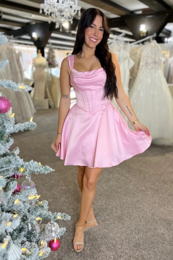 Short A Line Pink Satin Homecoming Dress Short Prom Dress