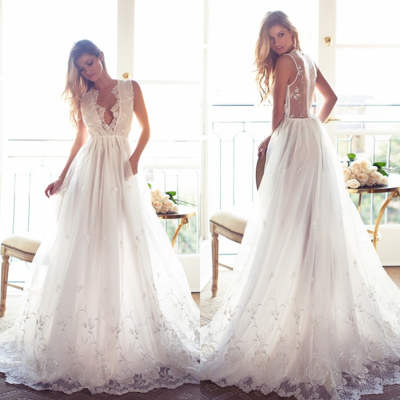 Princess A-Line Appliques V-Neck Lace Gorgeous Sleeveless Wedding Dress