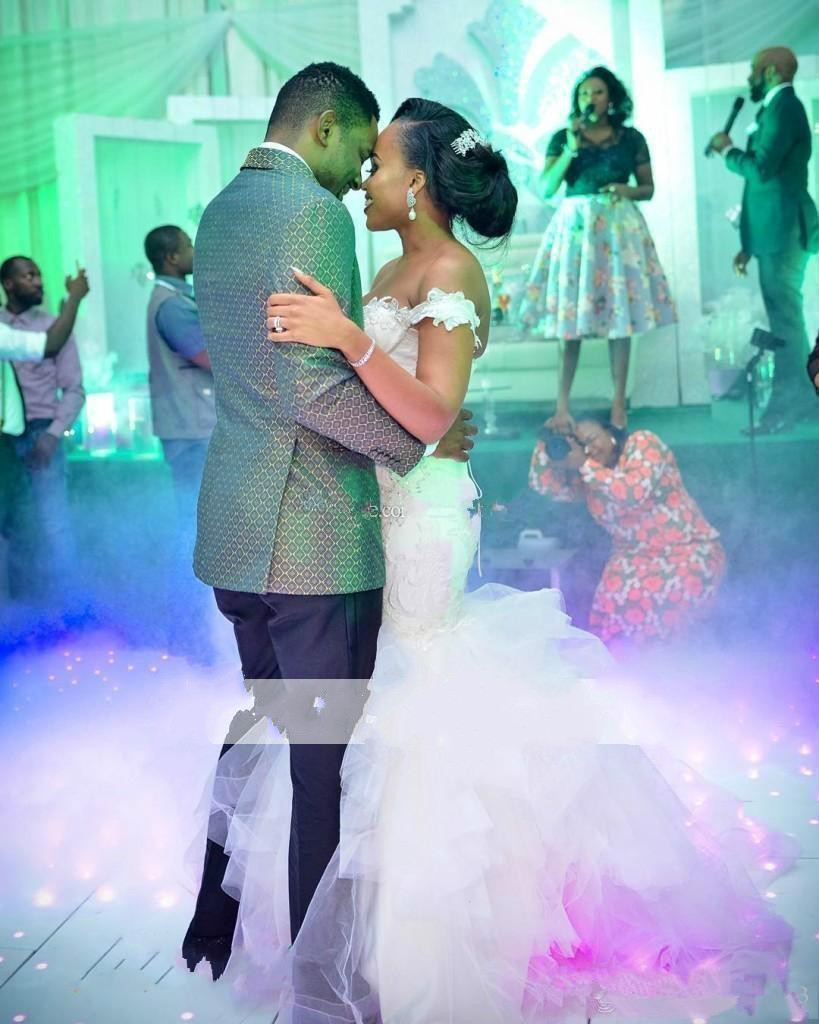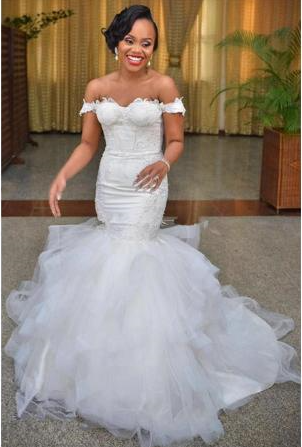 Modest Tulle Off-the-shoulder Short-Sleeve Lace-up Mermaid Lace Wedding Dress
