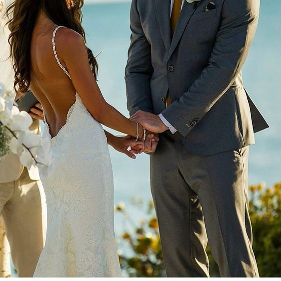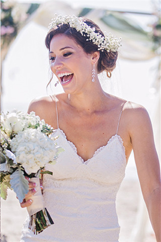 White Sexy Backless Spaghetti Straps Lace Wedding Dress Summer Beach Bridal Gown