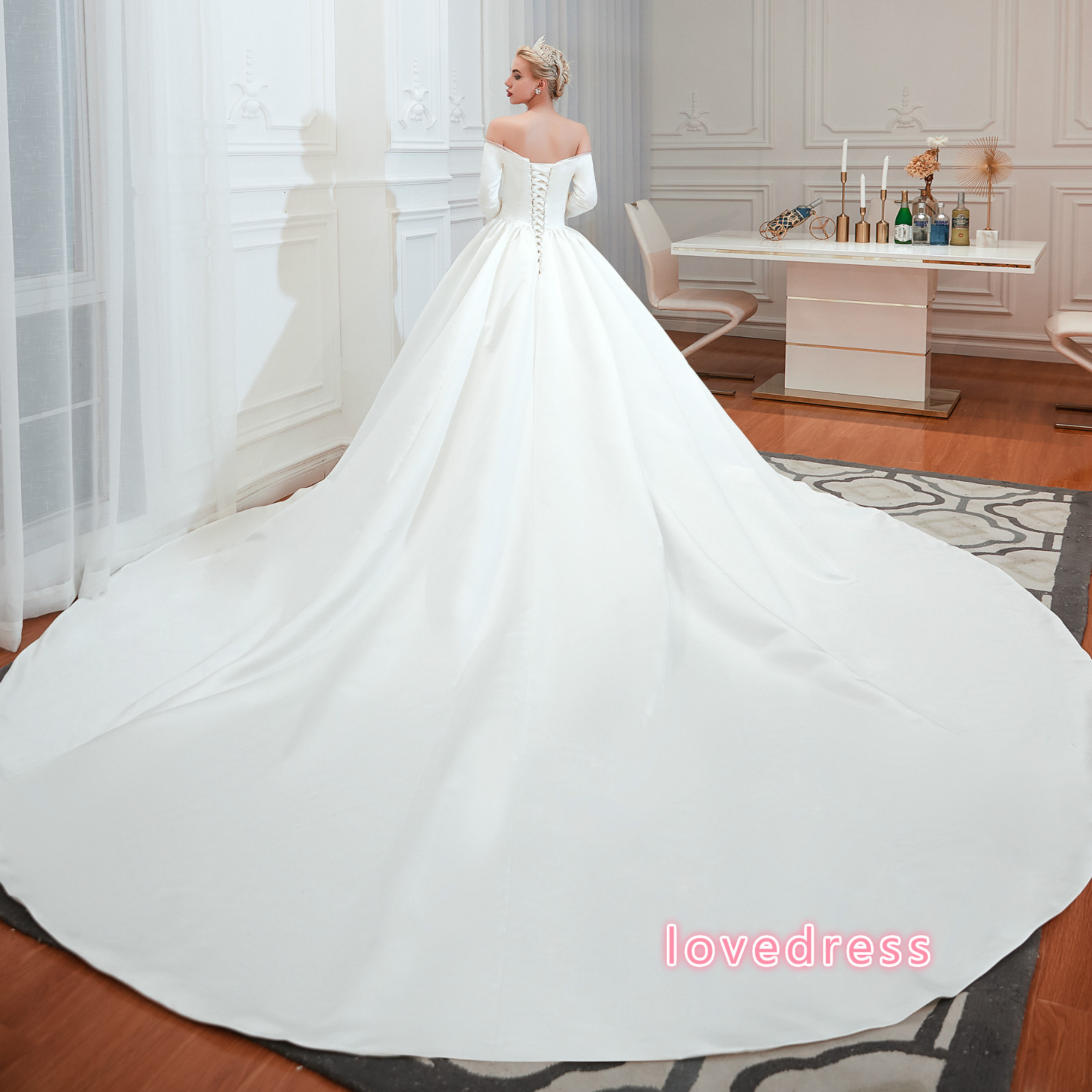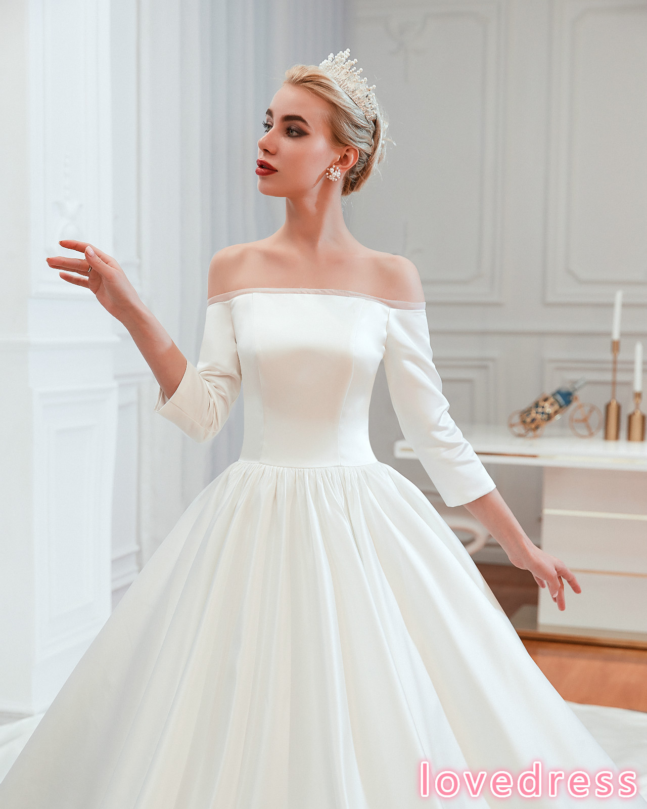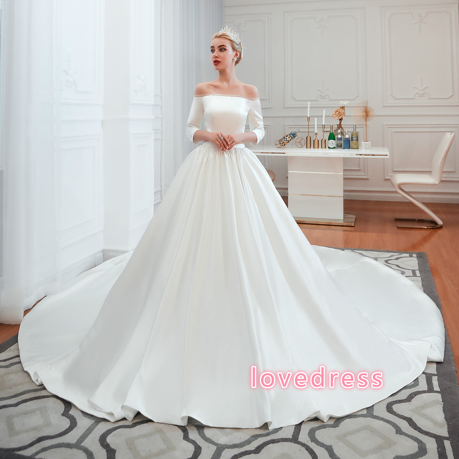 Cheap Simple White/Ivory Satin Long Wedding Dress