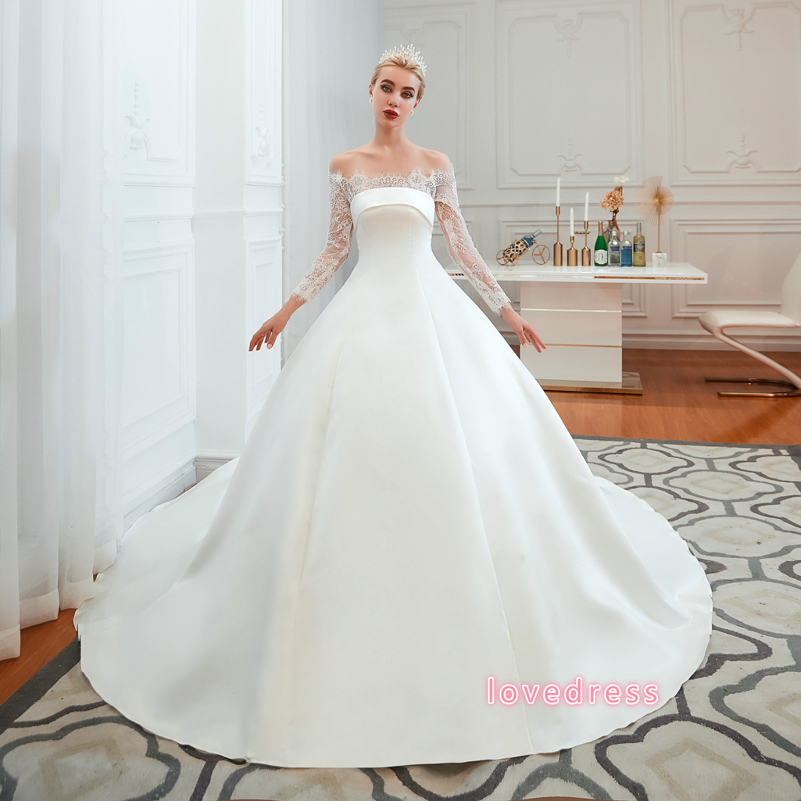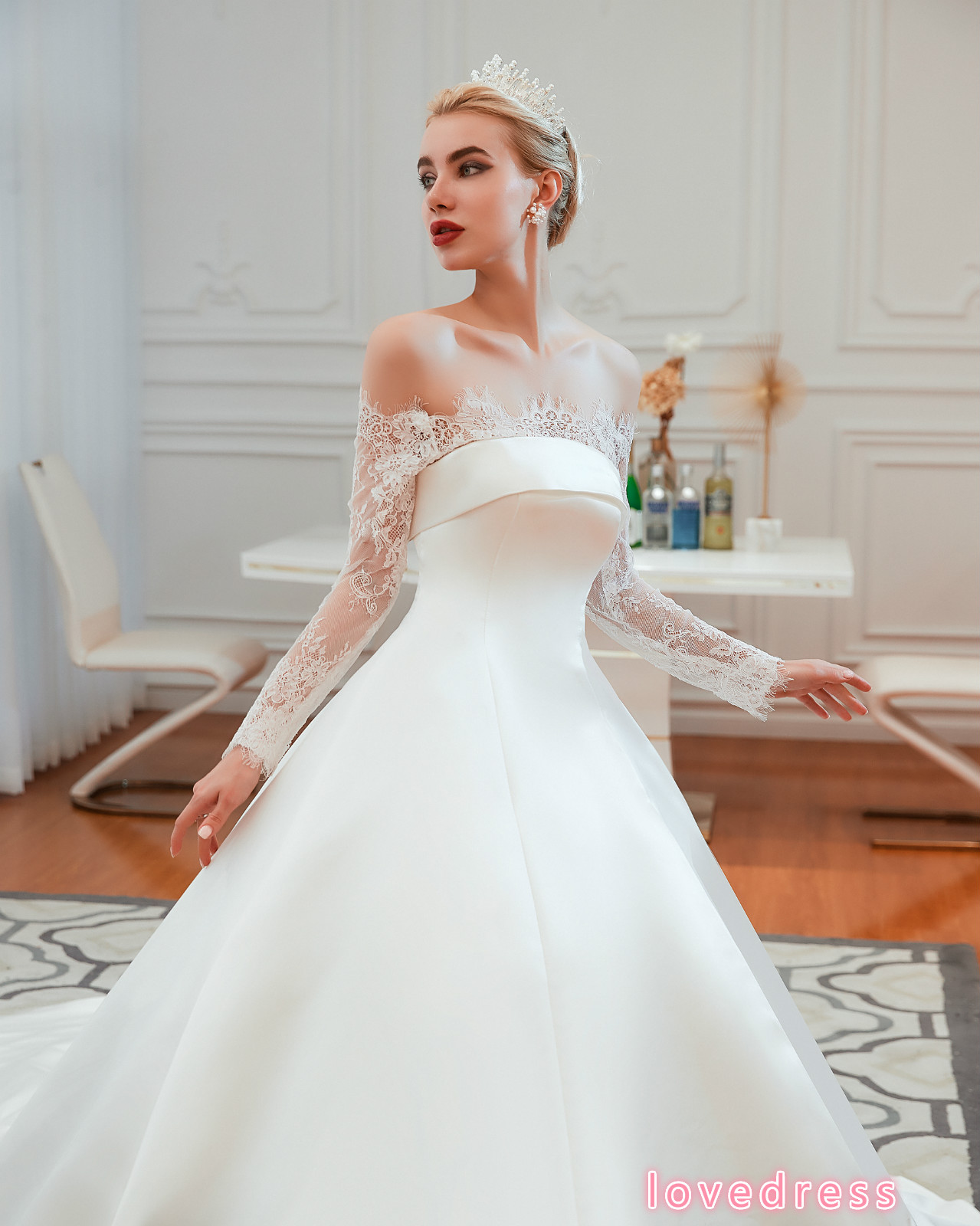 Elegant Off-the-shoulder Lace White/ Ivory Long Wedding Dress