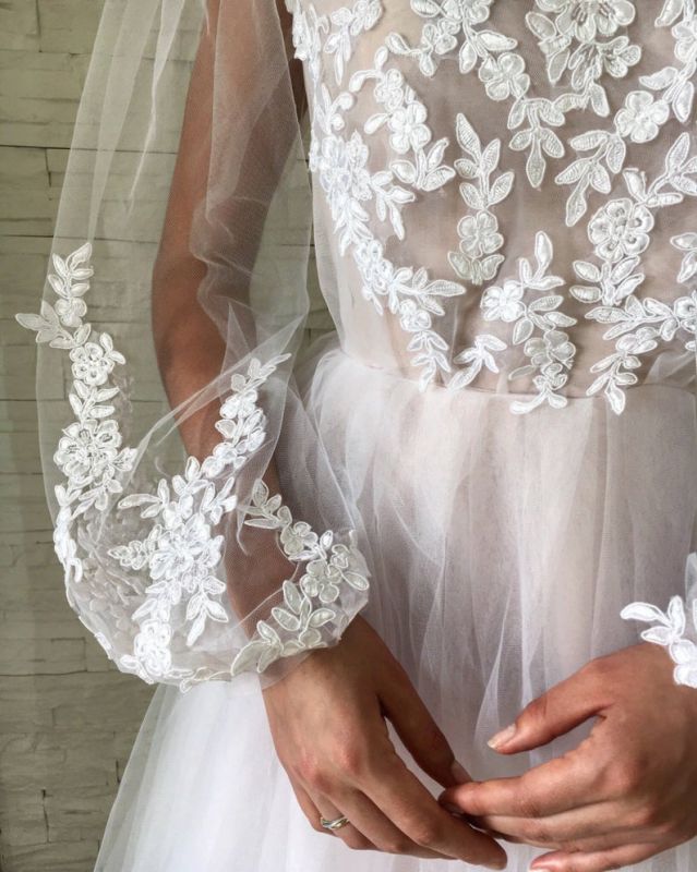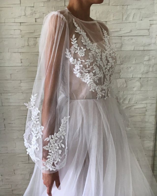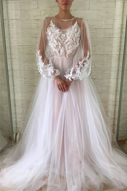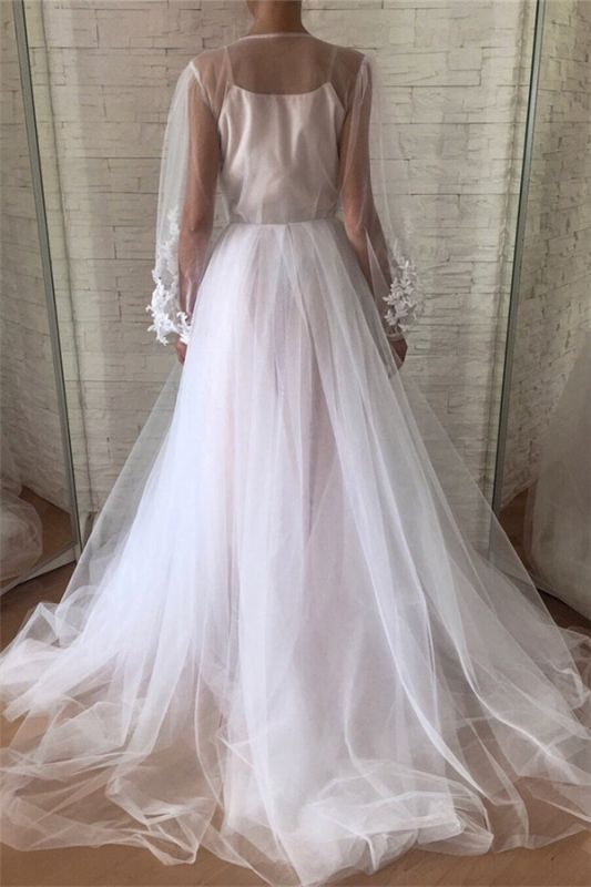 Applique Jewel Flare-long-sleeve With-slip A-line Wedding Dress