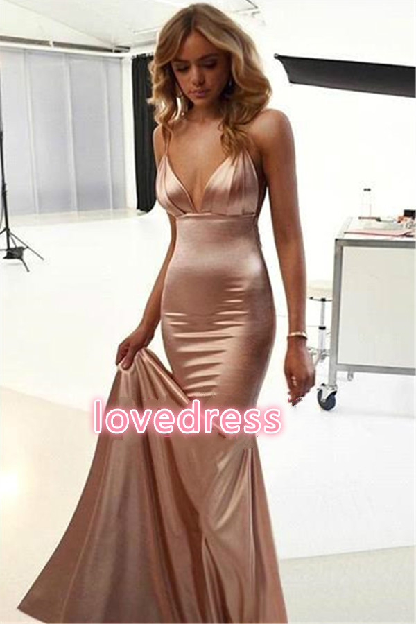 2020 Sexy Open Back Mermaid Evening Dresses Cheap Sleeveless Ruffles Spaghetti-Straps Formal Dresses