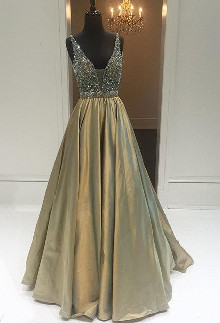 Crystal A-Line Prom Dress Latest Beading Floor Length Formal Occasion Dresses