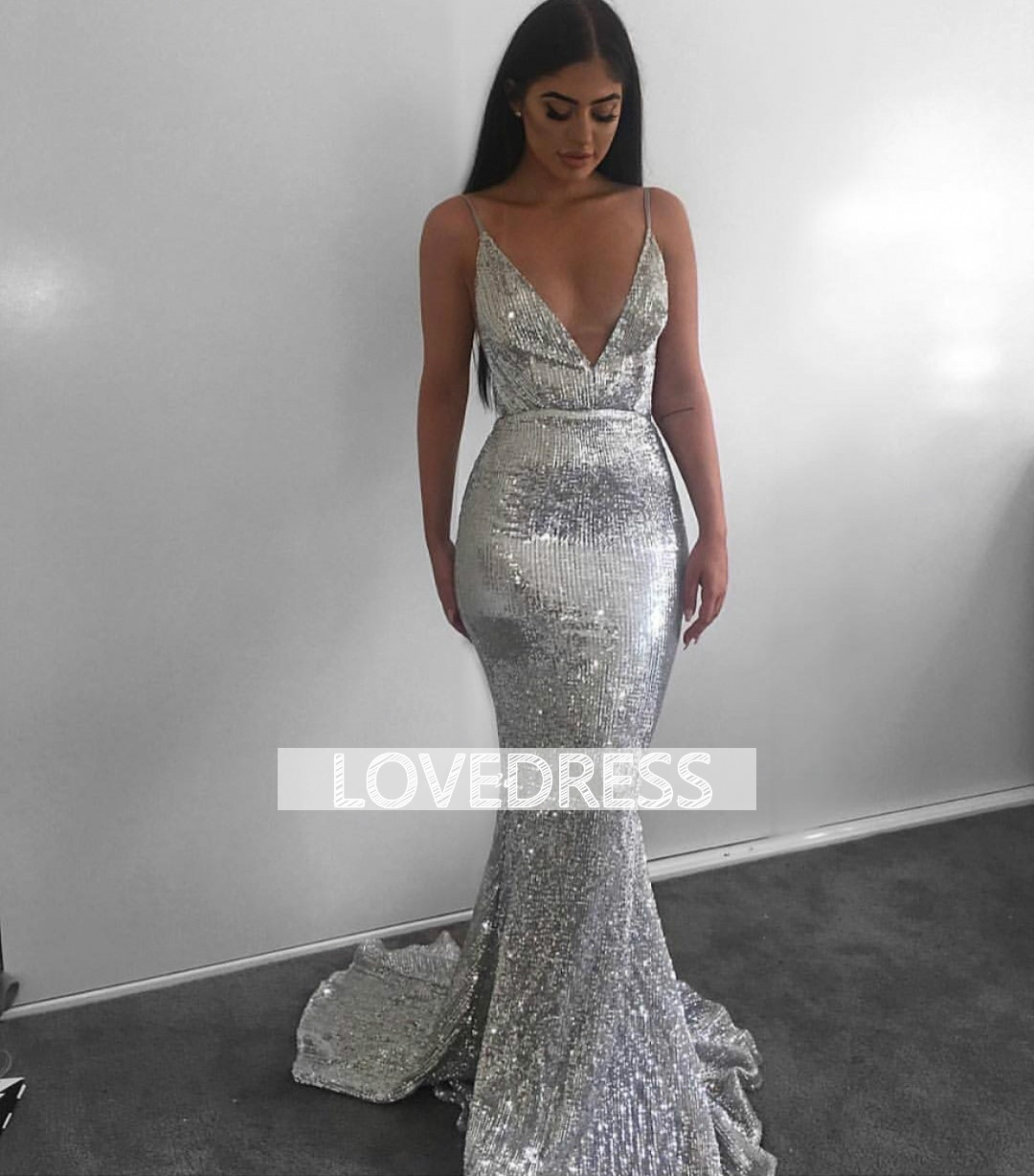 Shiny Sequins Mermaid Prom Dresses Spaghetti Straps Long Evening Dresses