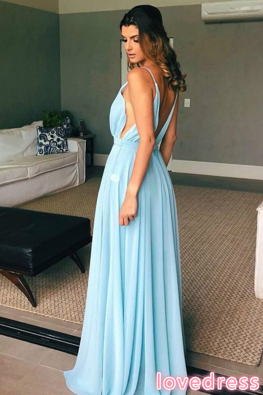 Excellent Spaghetti-Straps V-neck A-line Prom Dresses