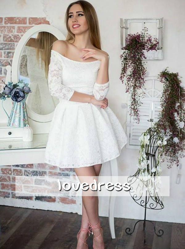 Chic White Lace Homecoming Dresses Off-The-Shoulder A-Line Mini Cocktail Dresses