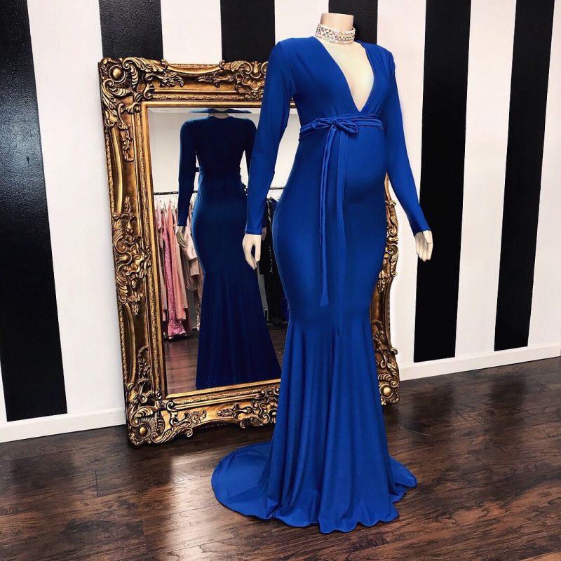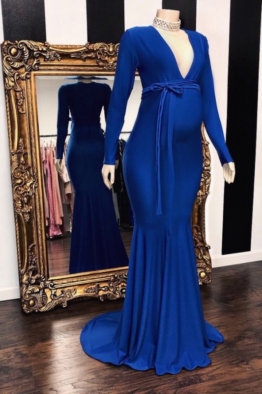 Elegant Long Sleeve Royal Blue Floor Length Baby Shower Prom Dresses