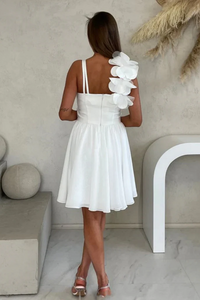 Simple One Shoulder 3D Flowers Homecoming Dress Short Prom Dress