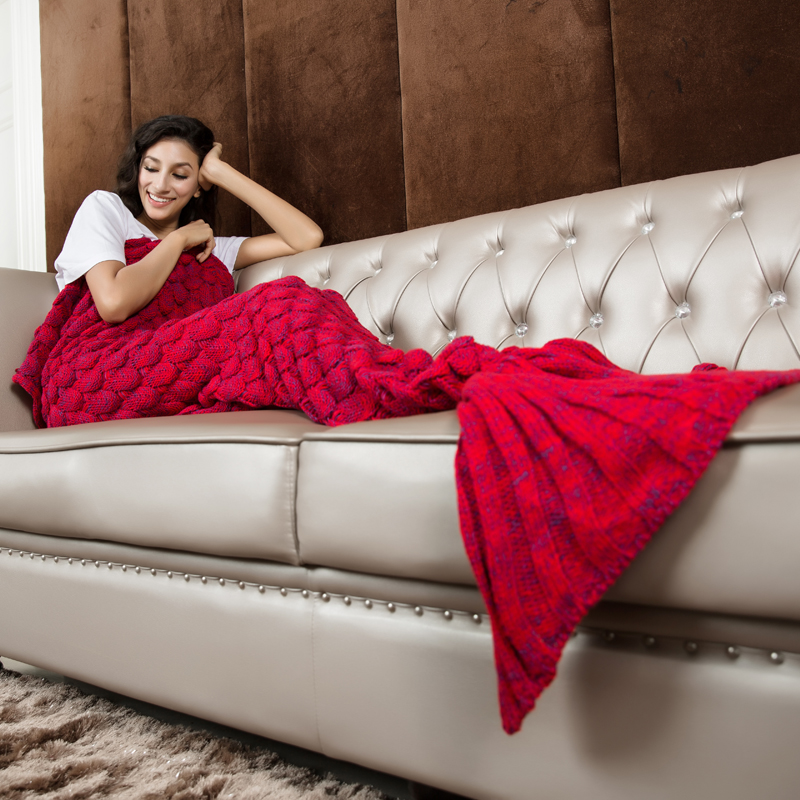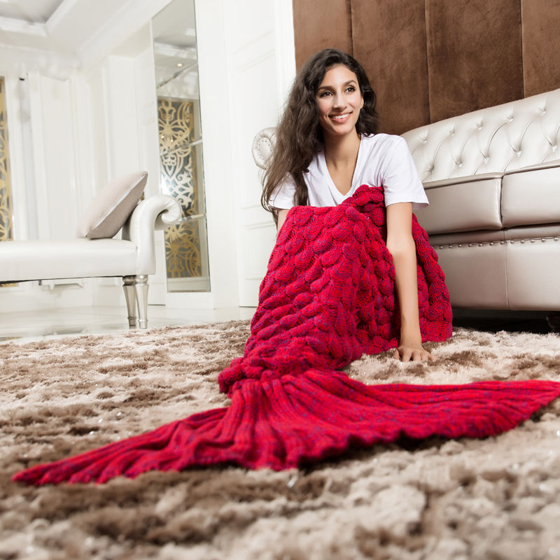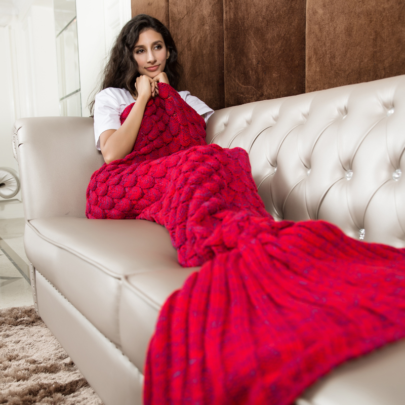 Knitted Red Mermaid Tail Blanket Crochet Mermaid Tail Mermaid Blanket