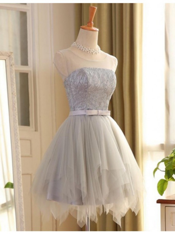 Short A-line Homecoming Dress Sleeveless Lace Up Round Classic Lace Short/Mini Dresses