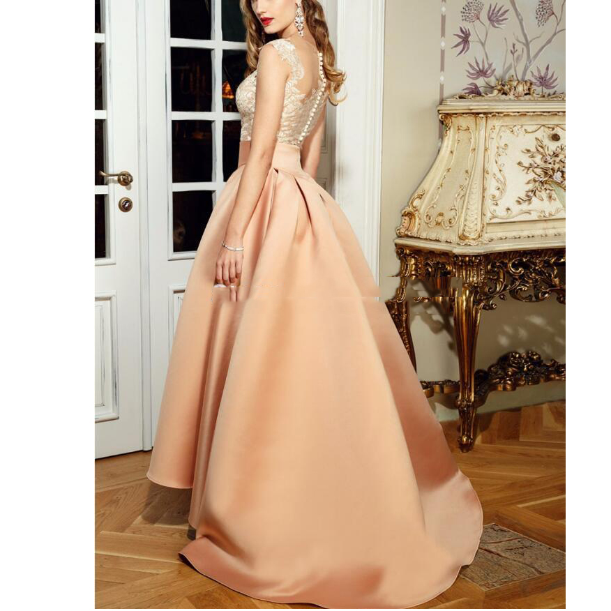 High Quality Elegant High Low Evening Dress New With Appliques Lace Long Sheer Back A-Line