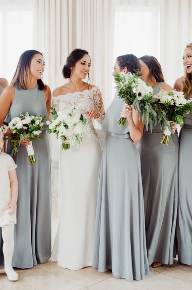 A-Line Crew Floor-Length Grey Sleeveless Chiffon Bridesmaid Dress with Ruffles