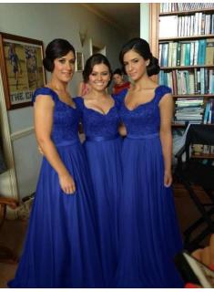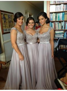 Sexy Silver Bridesmaid Dresses Lace Sequins Beaded Cap Sleeves Chiffon A-line Bridesmaid Dress