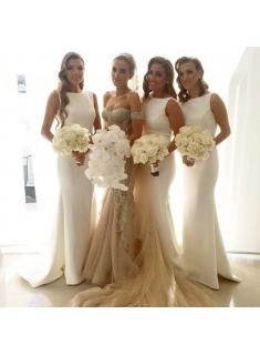 Elegant Simple Mermaid Bridesmaid Dress Sleeveless Sweep Train
