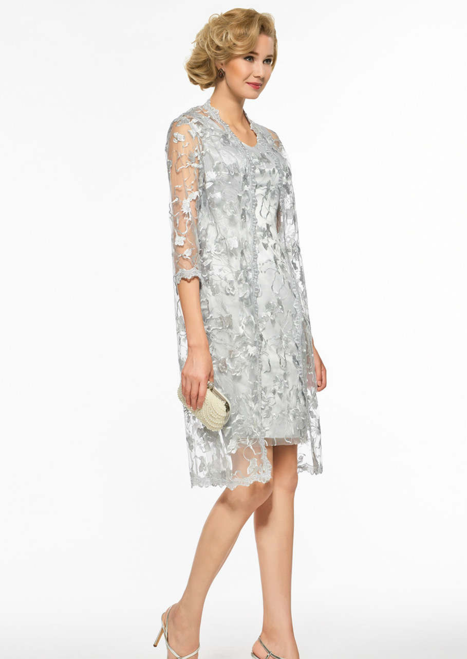 V Neck Sheath Lace Short Mother Of The Bride Dress