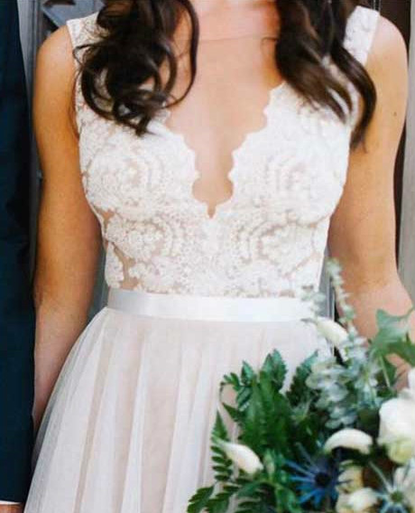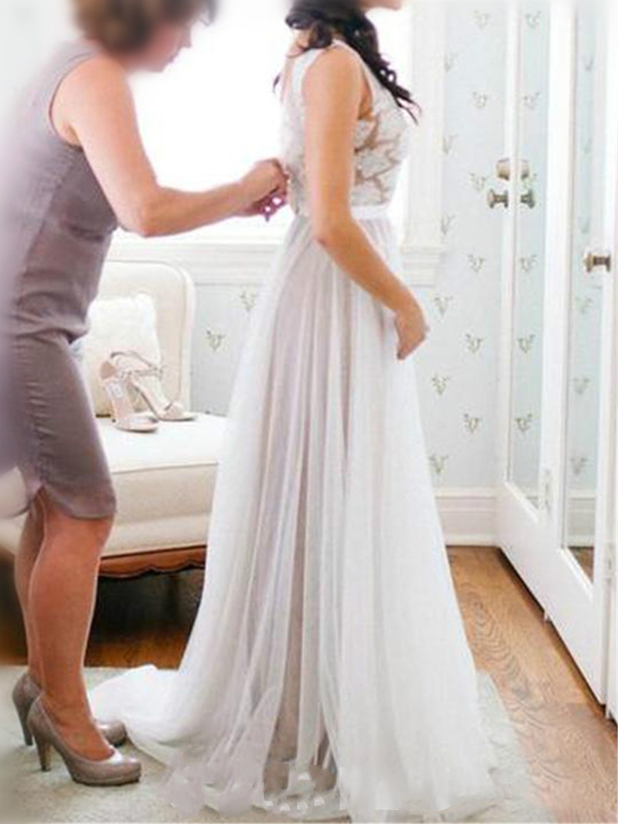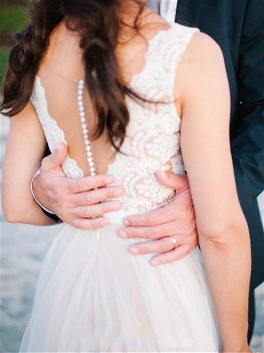 Beautiful Illusion Wedding Dress Neckline Lace A Line Beach Wedding Dress