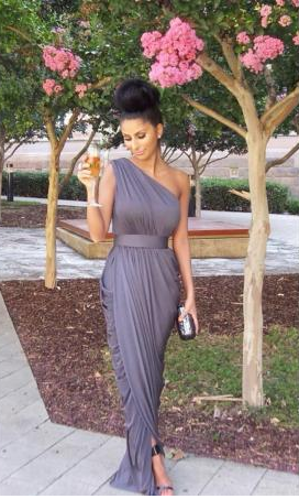 Modern One-shoulder Empire Bridesmaid Dress Floor-length With Beadings
