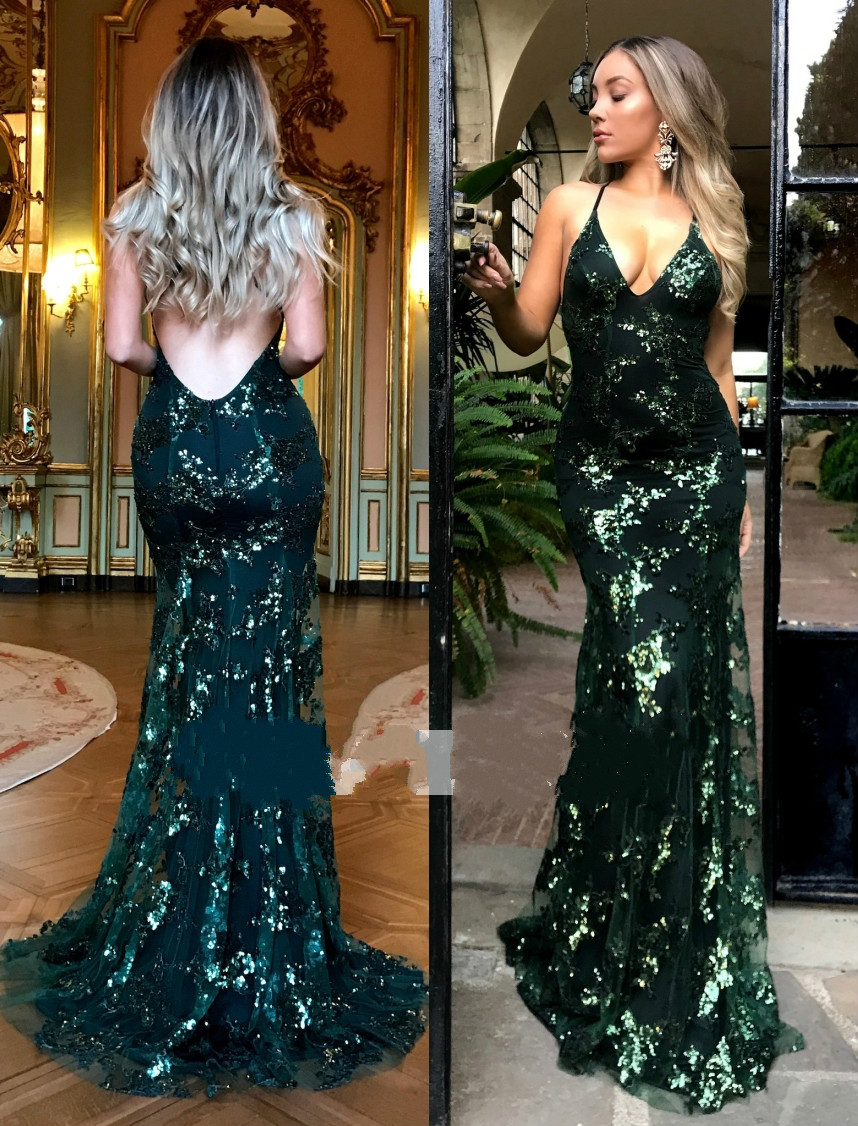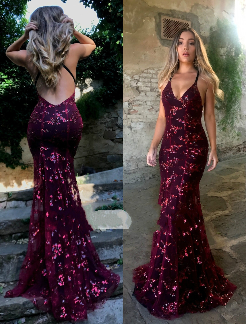 Sexy Lace Mermaid Prom Dresses | Spaghetti Straps Appliques Evening Dresses