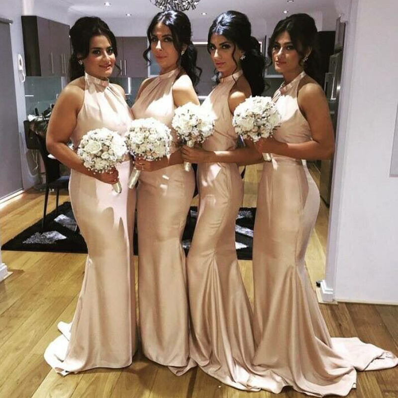 Sweep-Train Mermaid Sleeveless Newest Halter Bridesmaid Dress