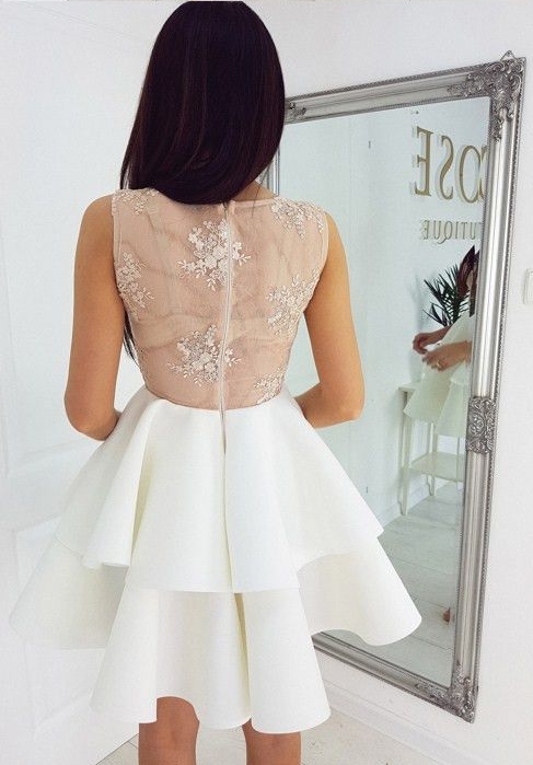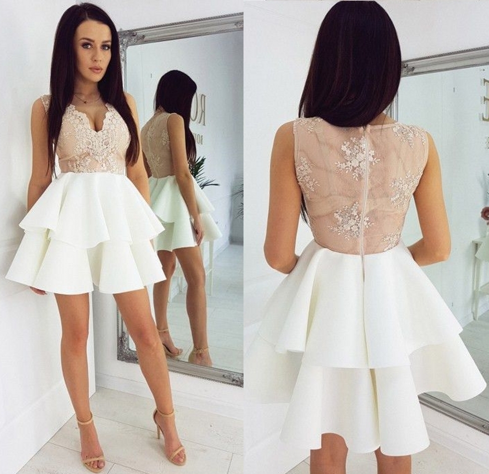 White V-Neck Homecoming Dresses Lace Appliques Ruffles A-line Cocktail Dresses