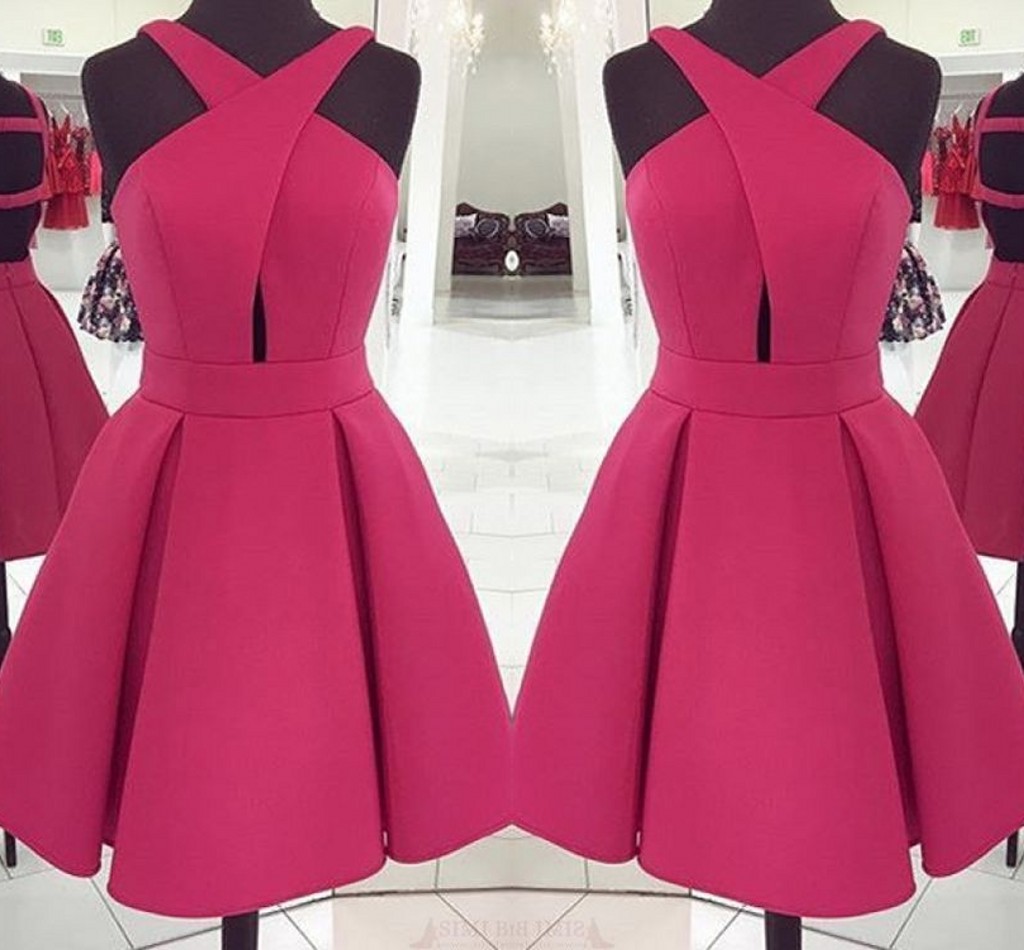 Chic Red Homecoming Dresses Crisscross Neck Sleeveless Short Formal Dresses