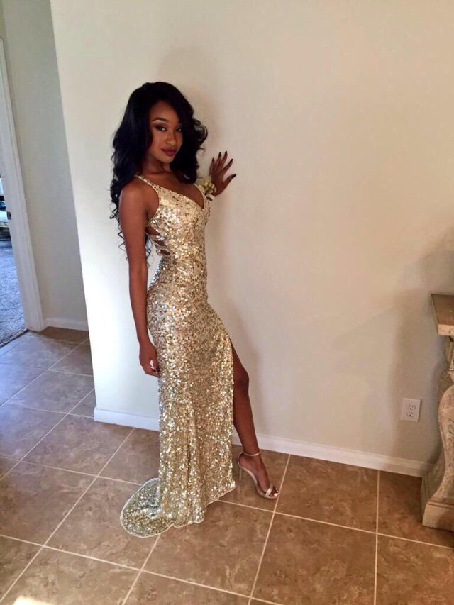 Hot Sexy V-Neck Split-Front Gold Long/Evening Prom Dress