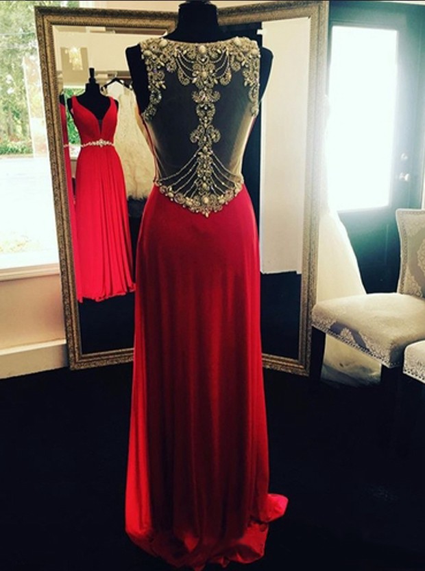 Beading Sleeveless Crystal Long Natural Prom Dresses