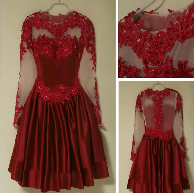 Burgundy Short Prom Dresses A-line Lace long Sleeve Homecoming Dress Party Dresses
