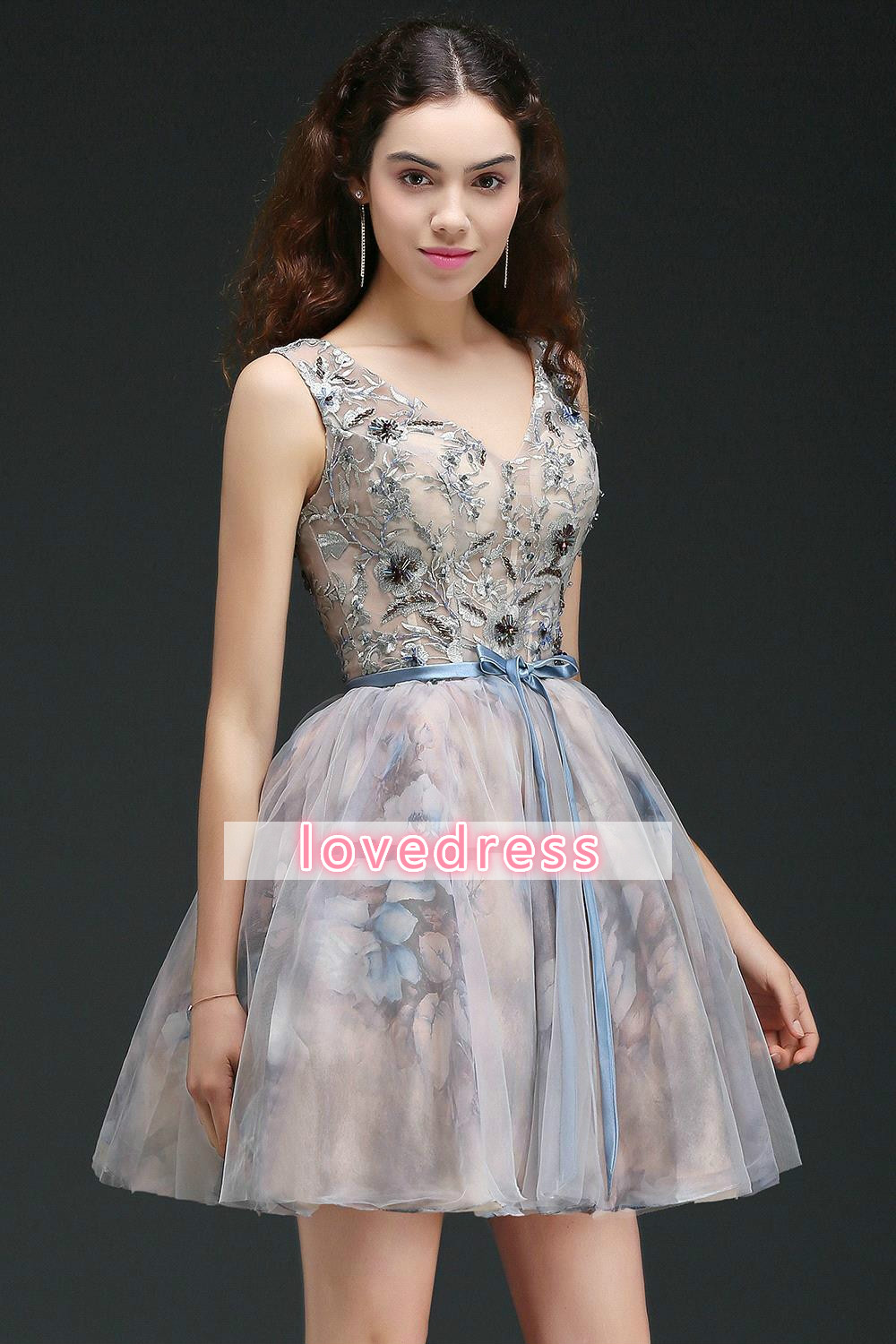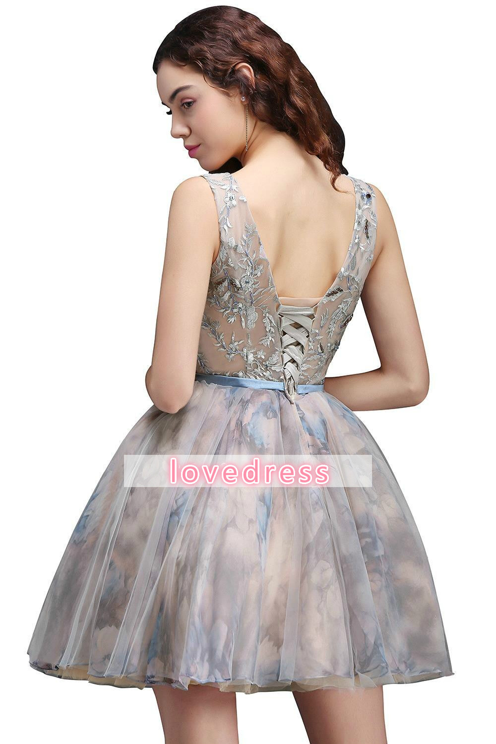 Cute Lace-up Short Sleeveless Straps Belt Flowers Homecoming Dress