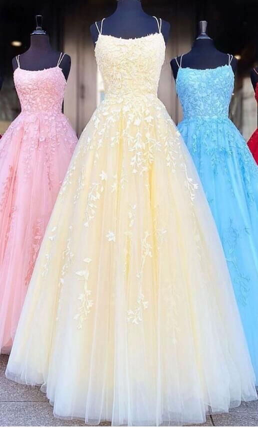 Lace Appliques Long Prom Dress Tulle Evening Party Dress
