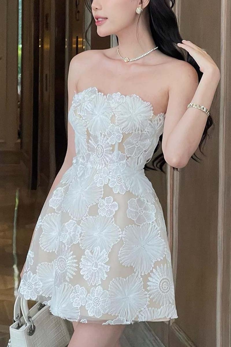 Strapless Appliqued Tulle A-Line Homecoming Dress Short Prom Dress