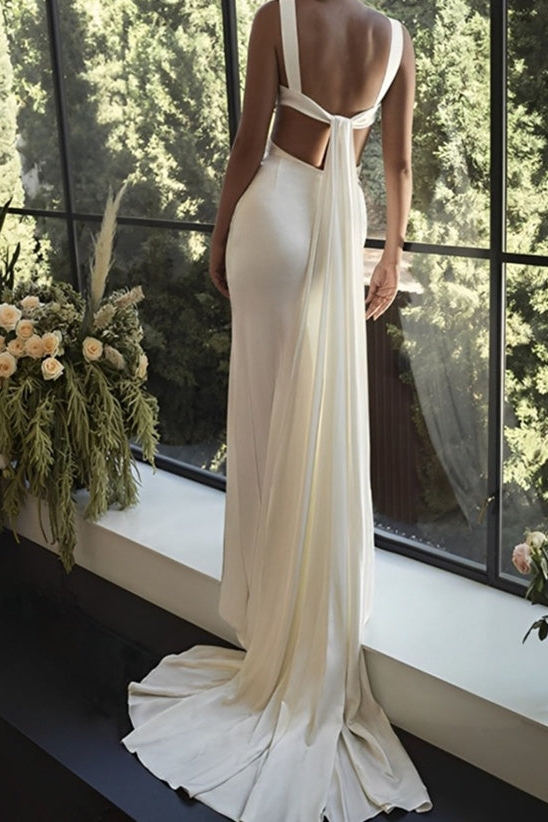 Column Sweetheart Floor-Length Wedding Dress With Split Side