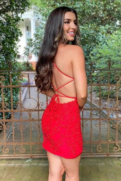 Red Lace Mermaid Open Back Homecoming Dress Short Prom Dress