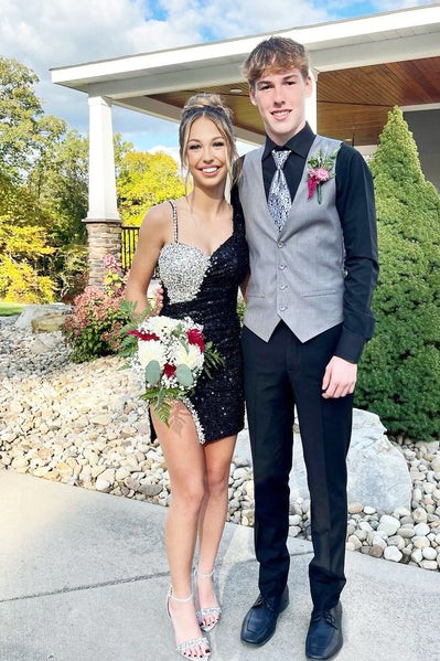 Bodycon V Neck Sequins Homecoming Homecoming Dress Short Prom Dress with Beading